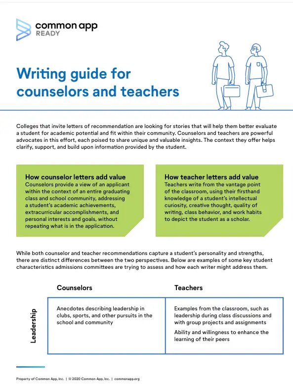 While both counselor and teacher recommendations capture a student’s personality and strengths, there are distinct differences between the two perspectives. This document gives examples of some key student characteristics admissions committees are trying to assess and how each writer might address them.