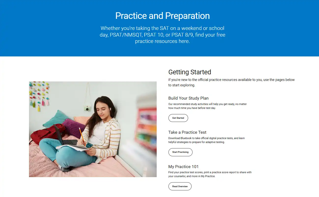 For the SAT, free online practice tests are also provided by the Khan Academy