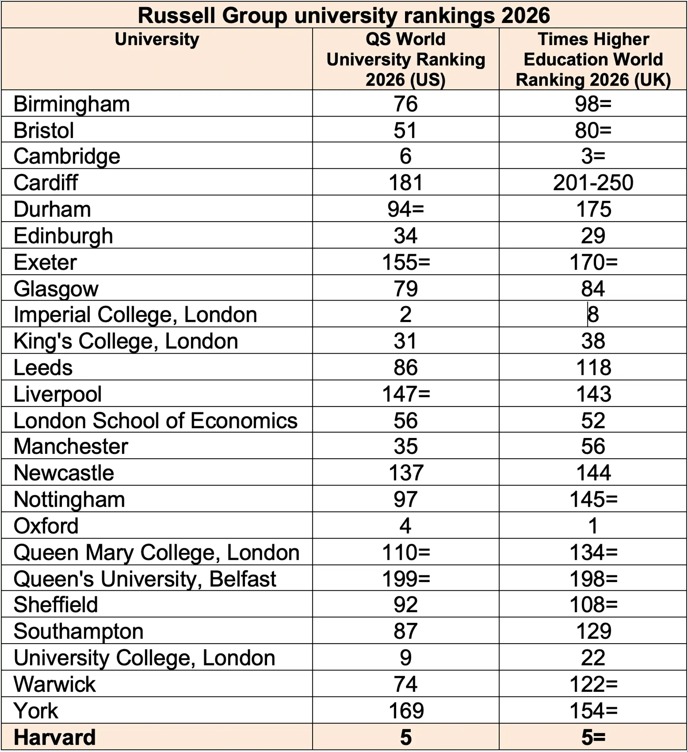 At US College Fairs, the Harvard Club of the UK’s alumni volunteers are sometimes asked: ‘Is there a US equivalent to the Russell Group universities in the UK?’ The short answer is ‘no’, but if you want a rough comparison between the Russell Group (the top 24 UK research universities) and other world universities, then you should find out where they sit in the world university rankings.